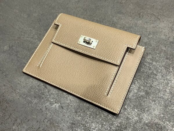 本日は、中央区在住の40代リピーター様より、Hermes(エルメス) ケリーポケットケース ヴォーエプソン エトープ ゴールド金具をお買取りいたしました。