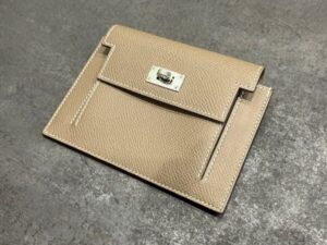 お持ち込みいただいたのは、未使用保管品。箱・タグ付きで、まるで新品のような美しい状態でした。上品なエトープカラーにゴールド金具の組み合わせは、エルメスの中でも特に人気の高い組み合わせです。